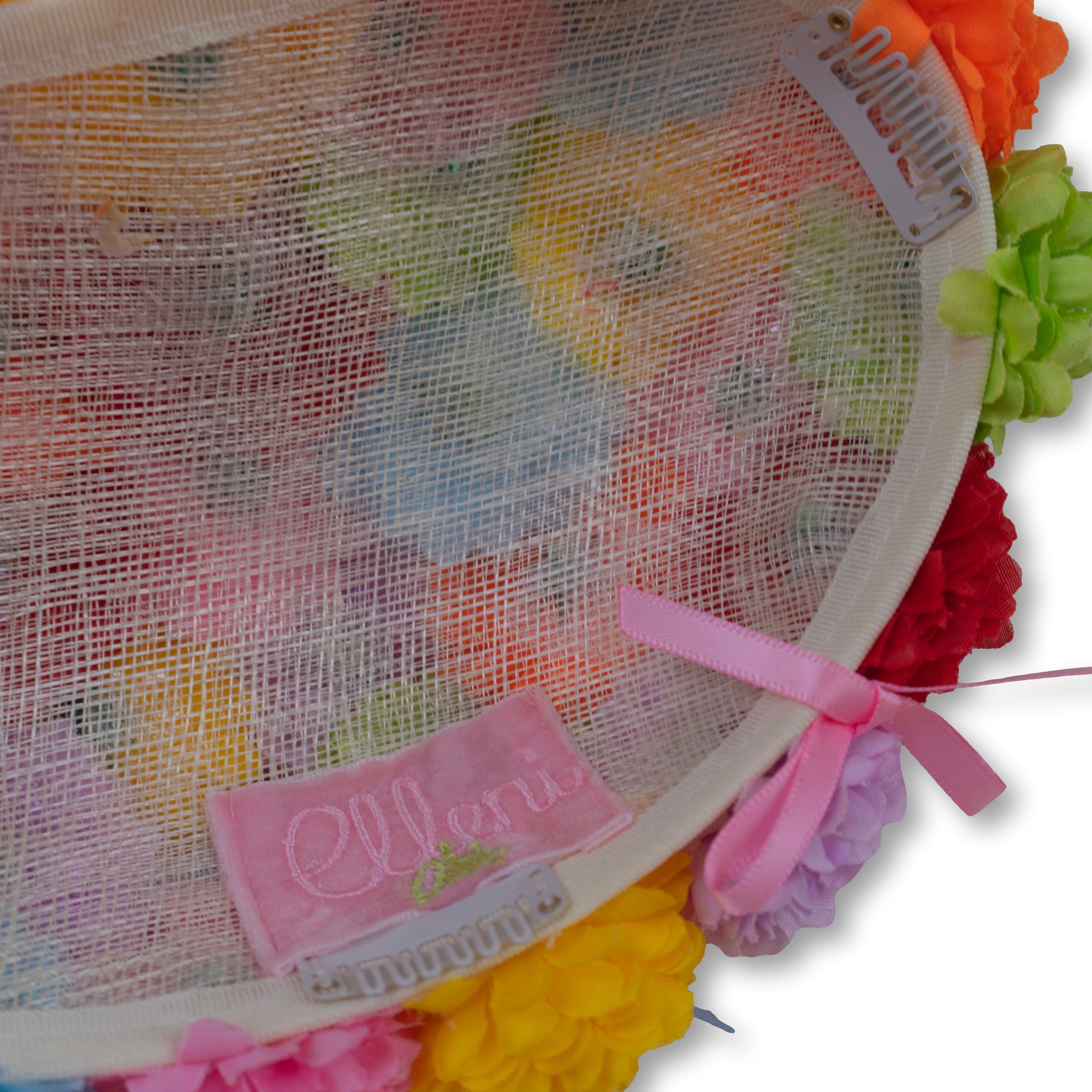 On a beige dipped millinery base, measuring approximately 18.5cmx13.5cm, The Lola (Blooms & Bows Headpiece) is completely littered in silk hydrangea flowers in an array of colours. Scattered throughout are satin bows in corresponding colours. Though each piece features the same selection of colours and quantity of flowers and bows, the exact placement of each will differ from hat to hat - making your piece completely unique!