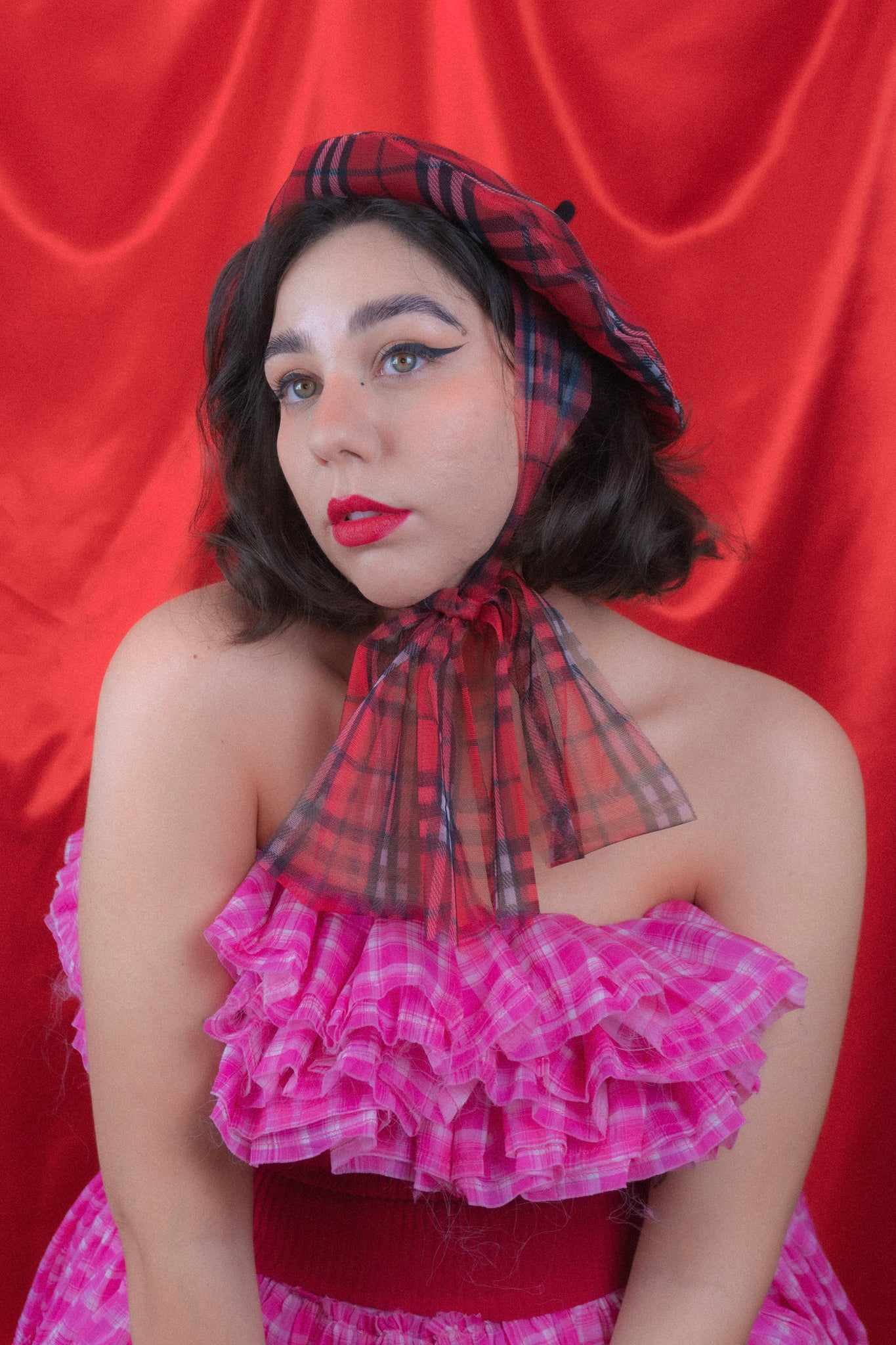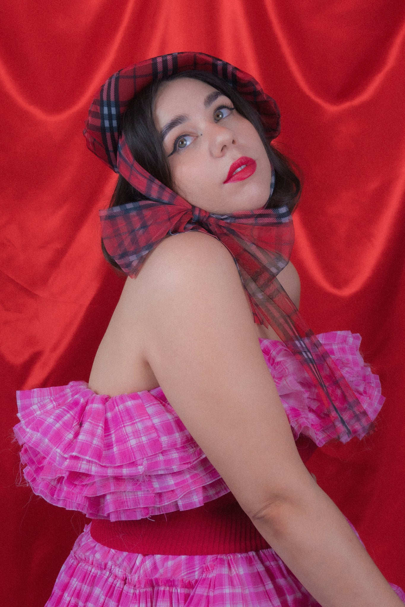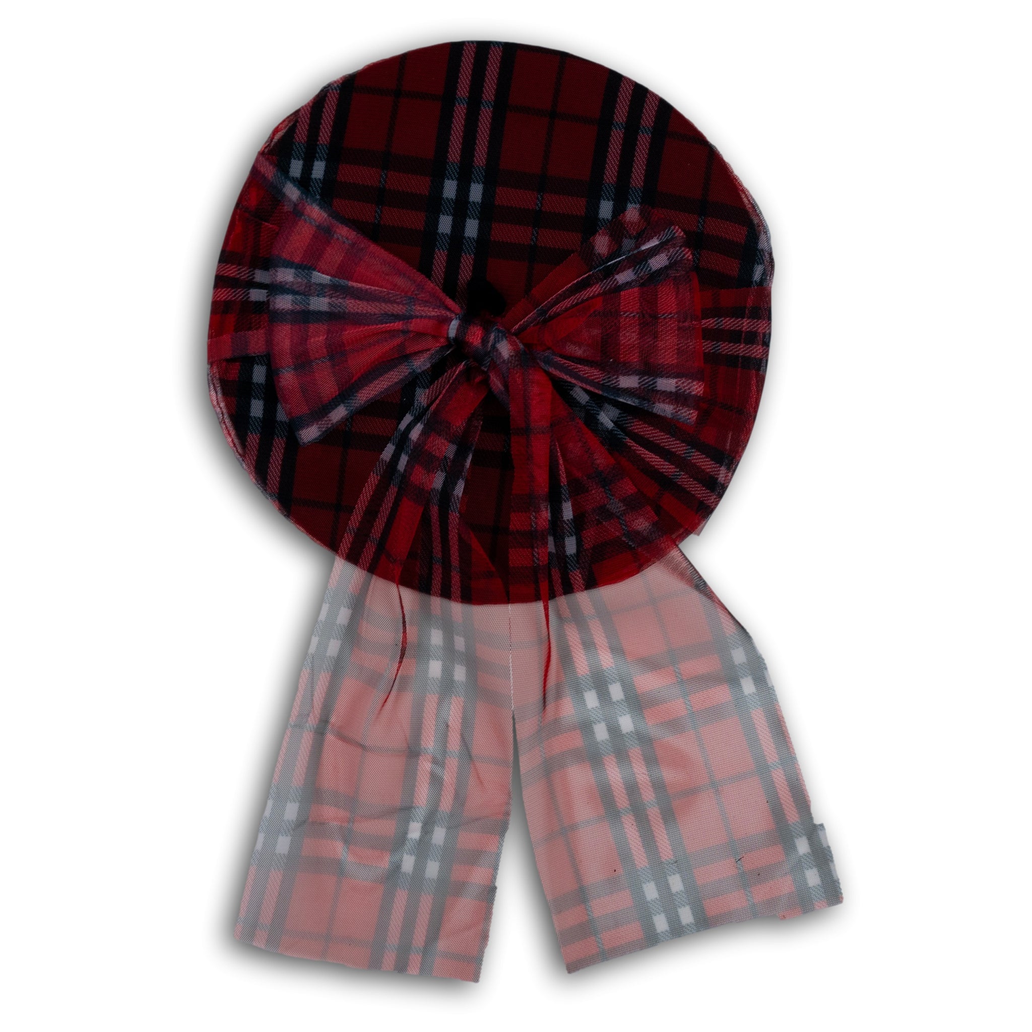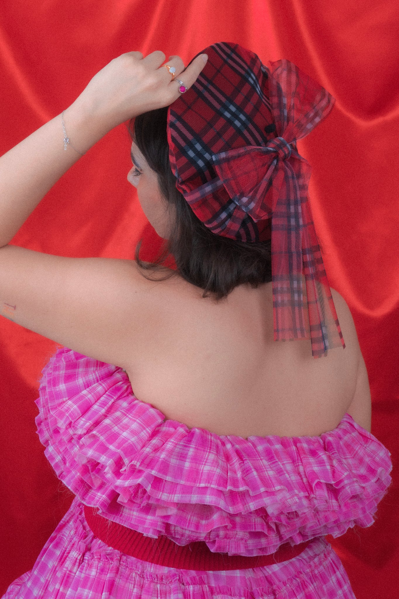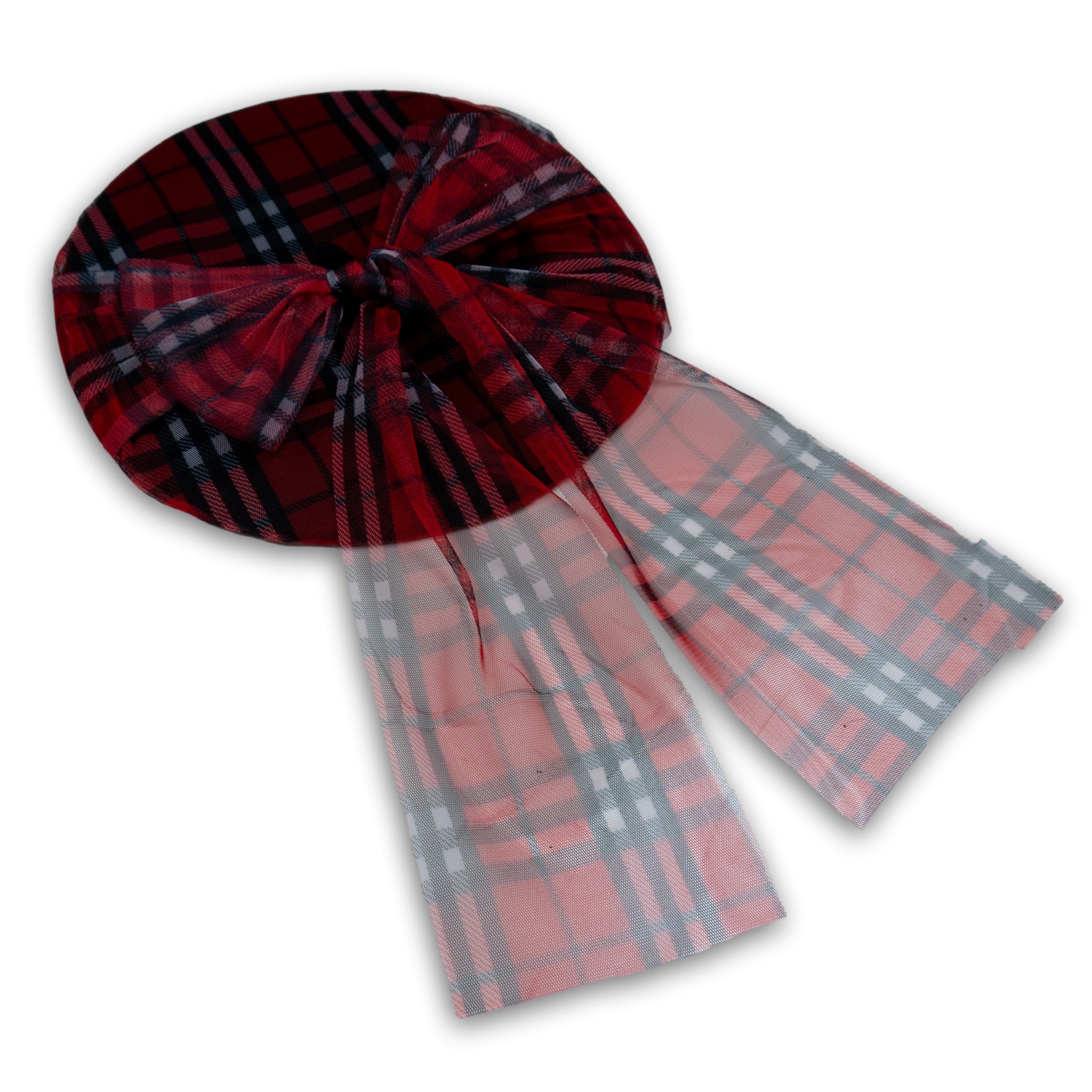 Red Tartan printed tulle lines the outside of a black beret, wear as is or with the included, detachable tartan ties that can be styled in a myriad of ways. Simply clip the ties onto the inside rim of the beret with press studs on days you're feeling like a little gift, and easily remove for standard tartan days! *Be gentle when removing the tulle, unclip from the press stud not by pulling on the tulle ties.